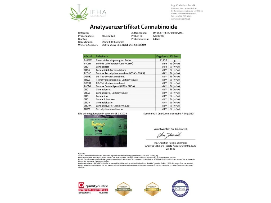 Manufacturer: UNIQUE THERAPEUTICS GLOBAL s.r.o., Czech Republic